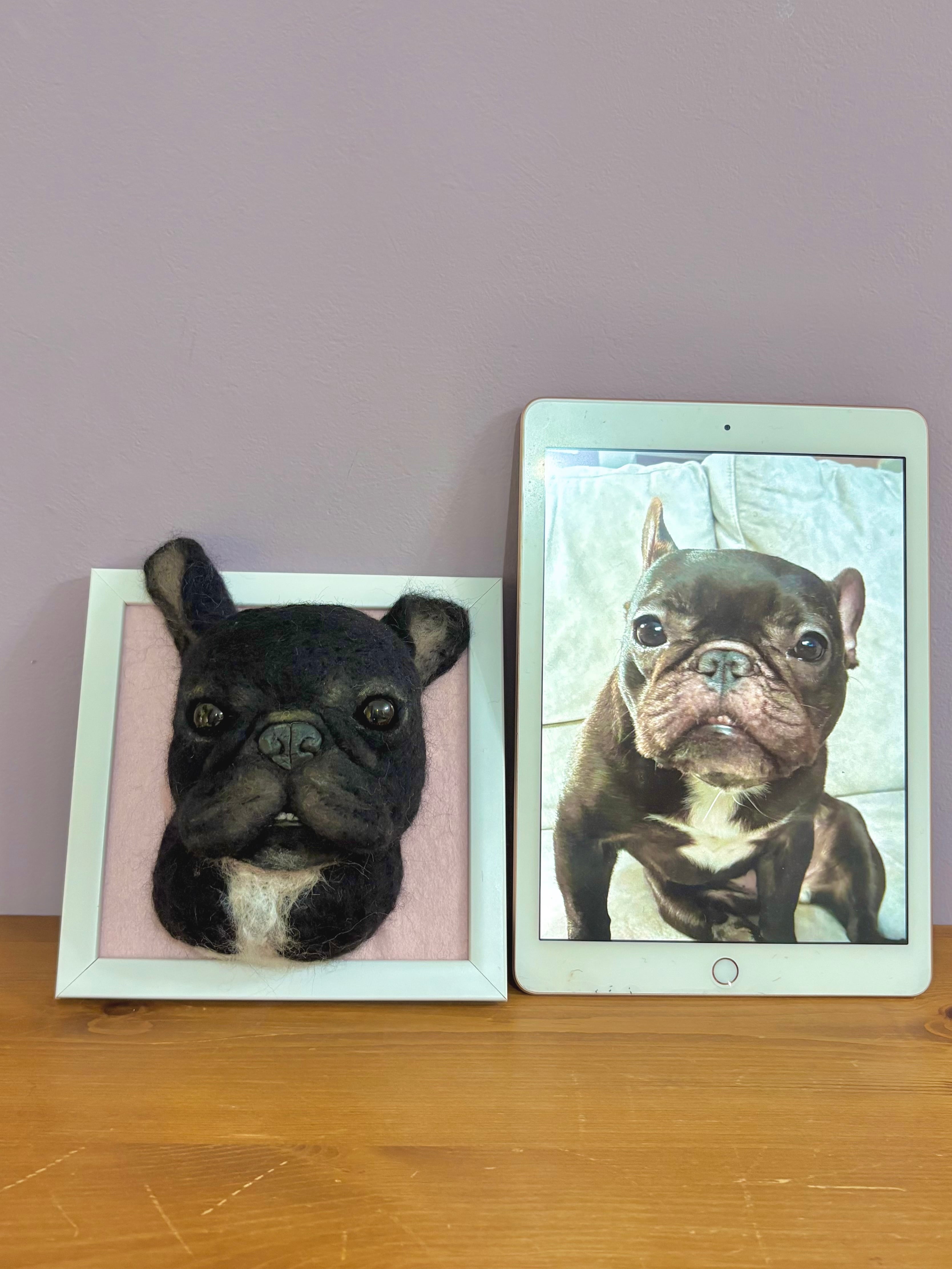 大好きな“うちの子”のとっておきの写真に似せて、写真フレームから飛び出た羊毛フェルトドールをお作りします。